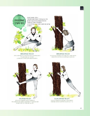 아름답게 가꿀 수 있게 해준다. 실내 체조보다는 맑은 공기 속에서 나무를 이용해 동작을 실시하면 1석 2조의 효과를 볼 수 있다.