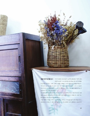 숲에서 만난 예술가 수수공방 이연희 작가 실과 바늘로 한 송이 꽃 피우다 수수(秀手)가 움직이자 수수한 야생화 한 떨기가 피어난다. 자못 은은한 그 자태에 소소한 미소가 지어진다. 그렇게 이연희 작가가 피워 낸 꽃들은, 일상을 살아가는 우리 곁에서 생생히 살아 숨 쉰다. 글+사진 편집실 06