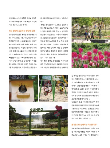 의 경량토를 깔아 단열성을 높였고, 벽체 다랭이논・연꽃원에는 어르신들의 발걸음 “최근 하천생태원에 튤립을 4만여 본 식 공원에서 심신을 치유하고 새로운