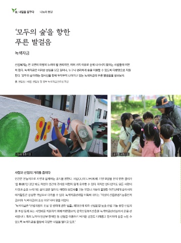 한다. ‘모두의 숲’이라는 청사진을 향해 뚜벅뚜벅 나아가고 있는 녹색자금의 푸른 발걸음을 살펴보자.