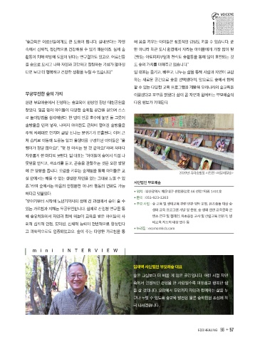 으로 숲교육 프로그램도 진행 중입니다. 특히 2019년에는 해운대 m i n i IN T E R V IE W