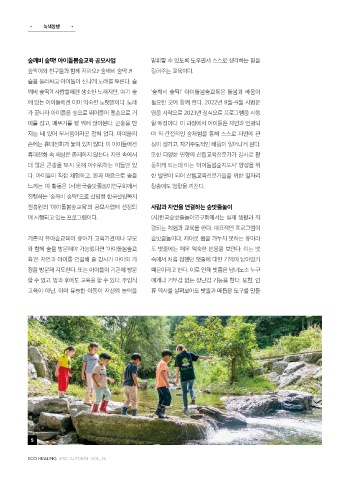 지는 데 있어 무서움이라곤 전혀 없다. 아이들의 며 직·간접적인 숲체험을 통해 스스로 자연에 관