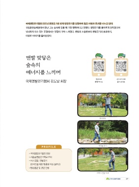 국립춘천숲체원에서 만난 그는 숲속에 있을 때 가장 행복하다고 말했다. 맨발걷기를 올바르게 알리겠다며