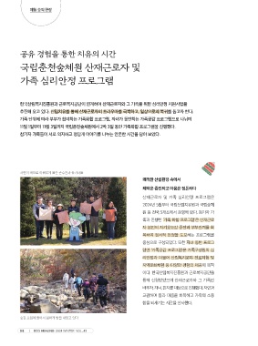 추진해 오고 있다. 산림치유를 통해 산재근로자의 트라우마를 극복하고, 일상으로의 복귀를 돕고자 한다.