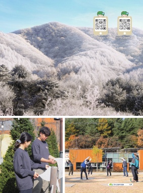영상으로 함께 떠나요 오디오북으로 들어 보세요 새하얀 모습을 자랑하는 겨울의 국립춘천숲체원 손수건을 햇볕에 말리고 있다 운동하기 전 몸을 풀기 위해 스트레칭을 하고 있다 09