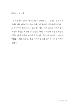 다독이고 있었다. 우리는 살아가면서 상처를 받고 살아간다. 그 상처는 혼자 치유 되기도 하고 때론 가슴 깊은 곳에 남아 우리를 힘들게 하곤 한다. 그 해 준이와 함께 숲에서 보낸 봄, 여름, 가을 그리고 겨울은 숲이 우리의 마음을 치유할 수 있음을, 여린 아이들의 웃음과 희망을 되찾게 해 수 있음을 깨닫게 해 주었다. 건강하게 자라준 그 아이와 변함없는 모습으로 그 곁을 지켜준 숲에게 고마운 마음을 이제야 전한다. 숲에서 찾은 웃음 | 57