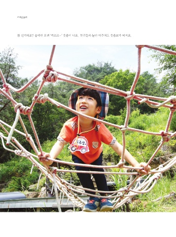 커버스토리 참 신기하죠? 숲에만 오면 ‘까르르~ʼ 웃음이 나요. 친구들과 눈만 마주쳐도 웃음보가 터져요. 숲에서는 친구들과 ‘쿵쿵쿵ʼ 마음껏 뛰고, 신나게 소리질러도 괜찮아요. 장난감도 필요 없어요. 나뭇잎, 돌멩이, 나뭇가지만 있어도 얼마든지 새로운 놀이를 만들 수 있거든요. 우리에게 숲은 즐거운 놀이터랍니다. 올 여름, 숲에서 재미있게 놀아요