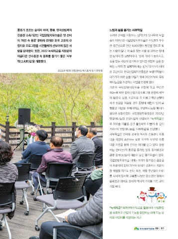 랑을 받아왔다. 또한, 2022 녹색자금을 지원받아 는 사람이 많다. 이 숲을 찾는 사람 중 20%는 장애