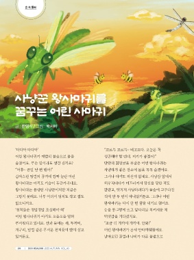 개구리, 말벌 같은 무서운 천적들이 많이 살고 어린 왕사마귀가 몹시 안타까워했어요.
