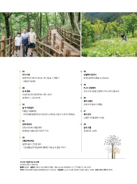 연락처 한국산림복지진흥원 홍보문화팀(042.719.4043) 편집위원 김주미, 이성호, 최상복, 연성훈, 권병석, 정라애 편집·디자인·제작 한국애드
