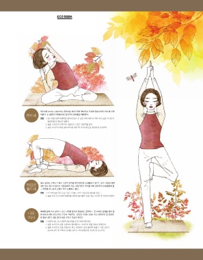 주요 요가 자세를 소개한다. 2. 숨을 내쉬면서 몸을 앞으로 굽혀 이마가 바닥에